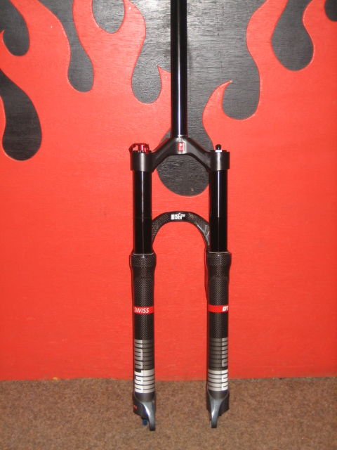 Now that Pace have stopped making forks and DT haven't started yet, we've got some of these White Brothers Rock Solid 29er carbon forks in. They're pretty, light and 465mm axle to crown. Just the ticket really.