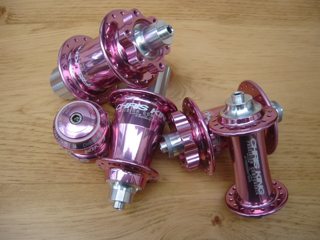 We've just had a bunch of pink Chris King stuff arrive - it's beautiful, benefits breast cancer research (and we all like the boobies, yes?) and limited in supply. We have hubs and headsets, but not many, so be quick.