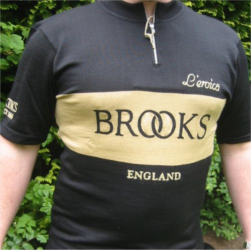 Gaiole, in Chianti, plays host to a community of cyclists determined to re-live the bygone era of cycling as it used to be - simply heroic. A grueling set of dirt road courses from 40 to 200 km await the participants who ride L'eroica on vintage bikes, whilst donning period clothing. Our friends at Brooks aim to make this a truly international event and have designed this beautiful, Italian made, wool jersey as a celebration of times past.